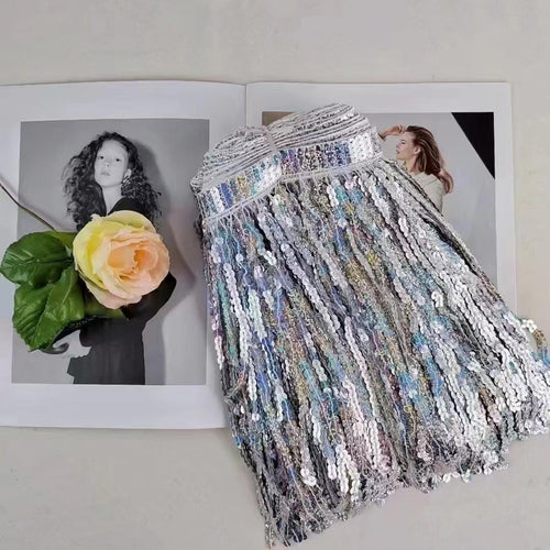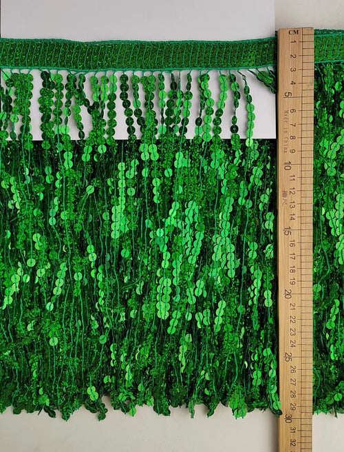 Frange à paillettes de 20 cm, 54 couleurs au choix, 9 m par couleur et par lot. Le client peut choisir sa couleur dans le nuancier. -