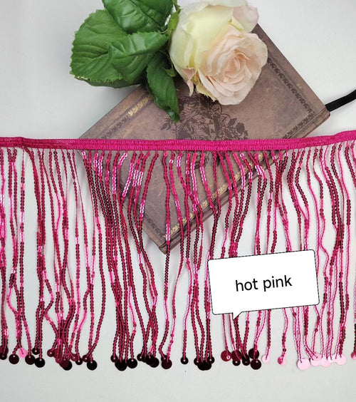 Frange perlée faite main, 90 cm de long et 9 cm de large, en perles de verre et de cristal. Idéale pour la couture, la confection d'abat-jour ou de rideaux. Disponible en 3 couleurs différentes. -